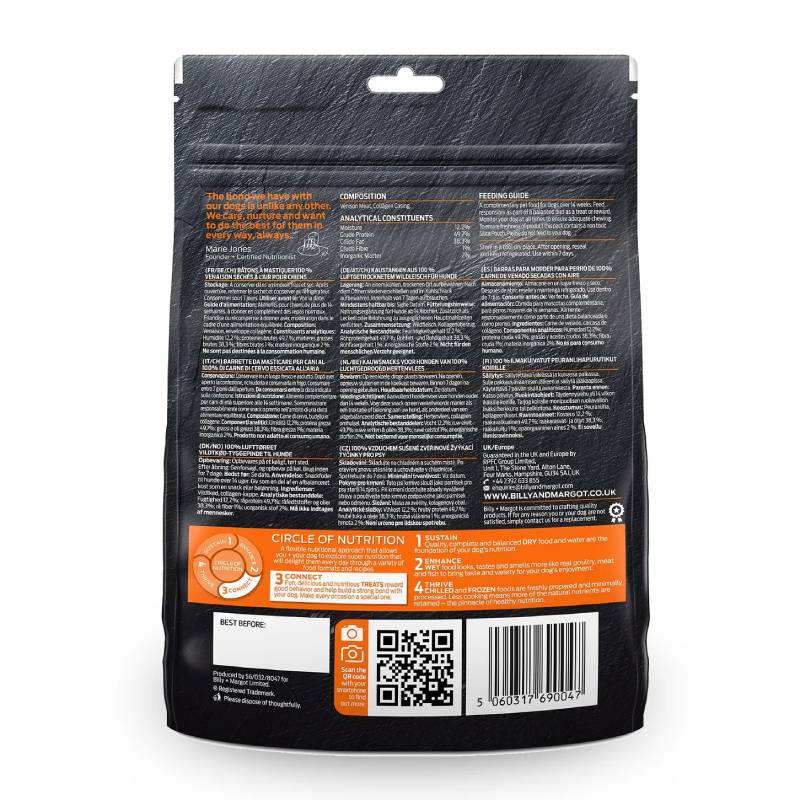 These Venison Chew Sticks from Billy and Margot are proudly made in the UK from 100% air dried venison and will help to support your whole dog’s health, benefiting their teeth, skin and bones.